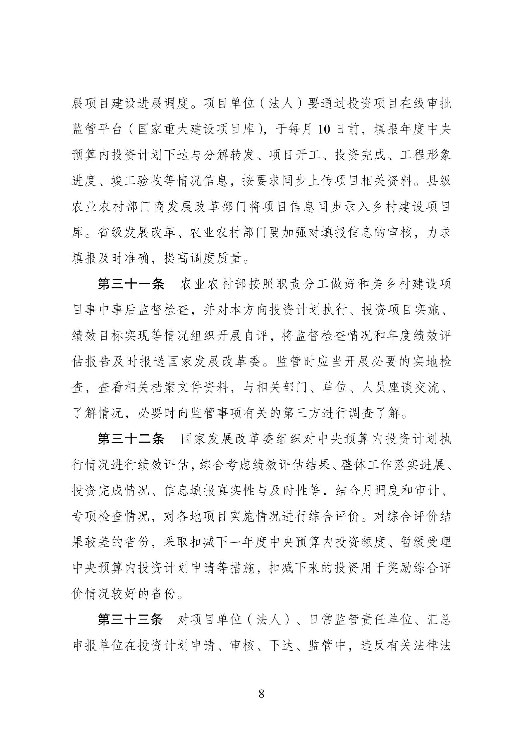 为贯彻落实党中央、国务院关于乡村全面振兴的决策部署,加强和规范和美乡村建设项目管理,根据《政府投资条例》及中央预算内投资管理等有关规定,我们制定了《乡村振兴(和美乡村建设方向)中央预算内投资专项管理办法》。现印发给你们,请认真执行。